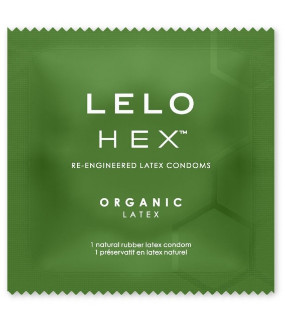 Los Preservativos LELO HEX Organic de látex natural orgánico combinan resistencia, sensibilidad y sostenibilidad. Con su diseño de 350 hexágonos, ofrecen un ajuste seguro y ultrafino. Caja de 12 unidades.