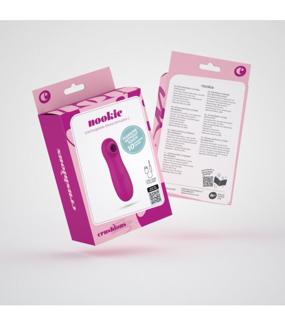 Nookie es un mini estimulador clitoriano de Crushious que combina potencia, diseño divertido y discreción total. Con 10 modos de vibración y tamaño compacto, es el juguete ideal para llevar tu placer a todas partes. ¡Recargable, irresistible y siempre lista!