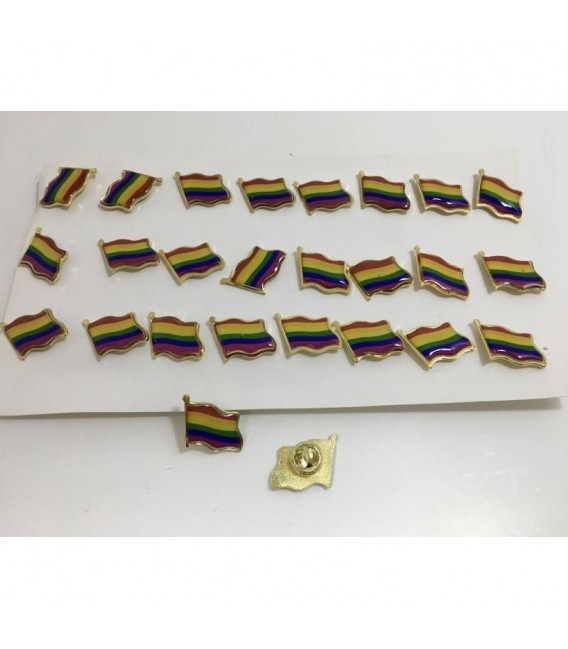 Pin de metal forma con forma de bandera y con los colores de la bandera LGBT+, ideal para reivindicar y para lucir con orgullo. Es el complemento perfecto para el Orgullo o para completar cualquier outfit.