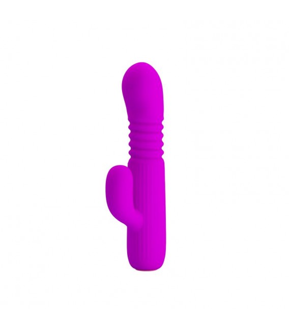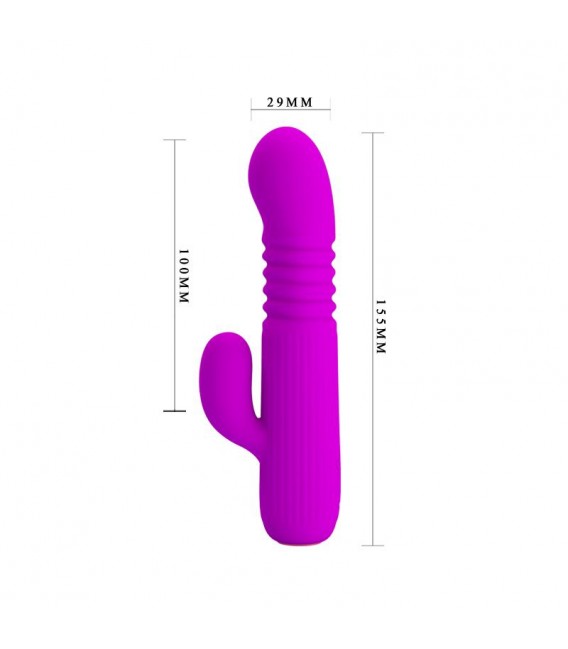 Este vibrador cuenta con 4 funciones de vibración y 4 funciones de movimiento y con un diseño elegante. Ha sido fabricado de silicona suave al tacto y recargable por USB. Cuenta con un pequeño estimular de clítoris para una estimulación doble.