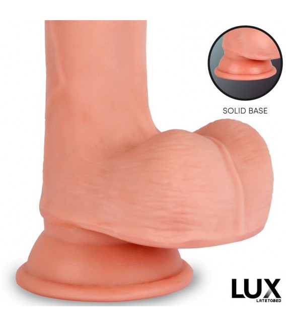 Fabricados con materiales que te dejarán impactada, nuestros dildos Lux cuentan con un diseño extra realista, con un cuerpo lleno de venas, un glande redondeado y rosado y en este caso, con unos testículos realistas.
