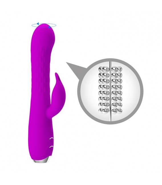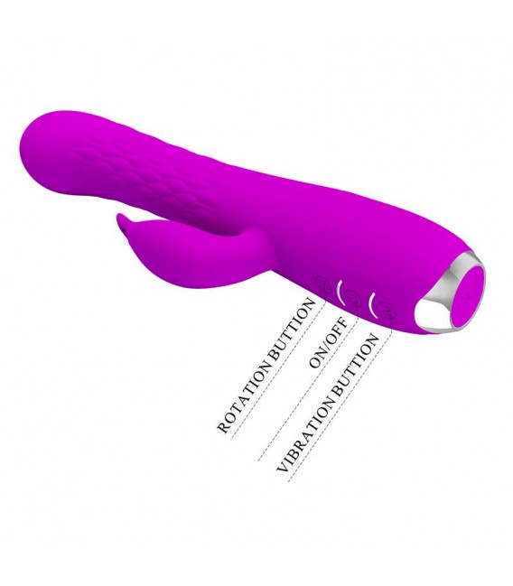 No hay nada como un clásico, y este vibrador Rabbit giratorio en color morado tiene todo para convertirse en uno. Fabricado con silicona de alta calidad, flexible y suave, este vibrador se adapta perfectamente a las curvas de tu cuerpo. Su diseño ligeramente realista incluye una punta definida y un eje giratorio con textura acanalada para una estimulación extra, mientras que en la parte frontal cuenta con un estimulador de clítoris en forma de conejo.