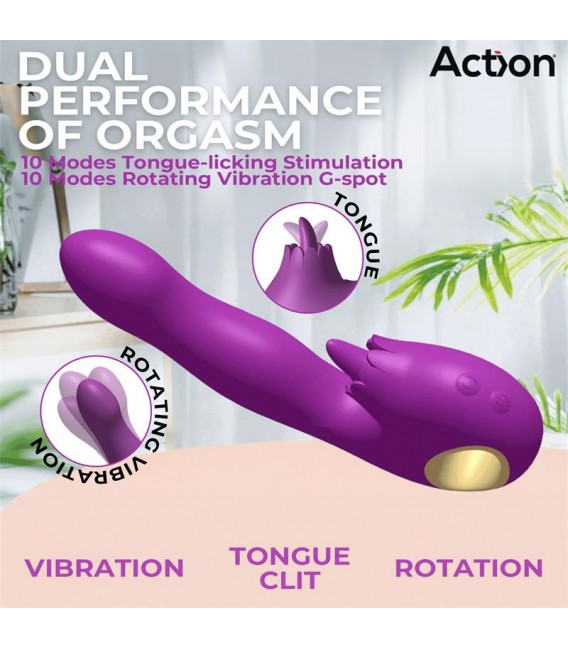 - Y, en tercer lugar, una lengua flexible en el estimulador de clítoris, diseñada para acariciar y estimular el clítoris de formas variadas, te ofrece 10 modos para brindarte un placer único y emocionante.
